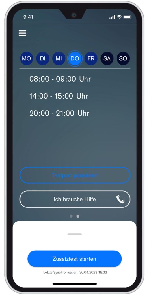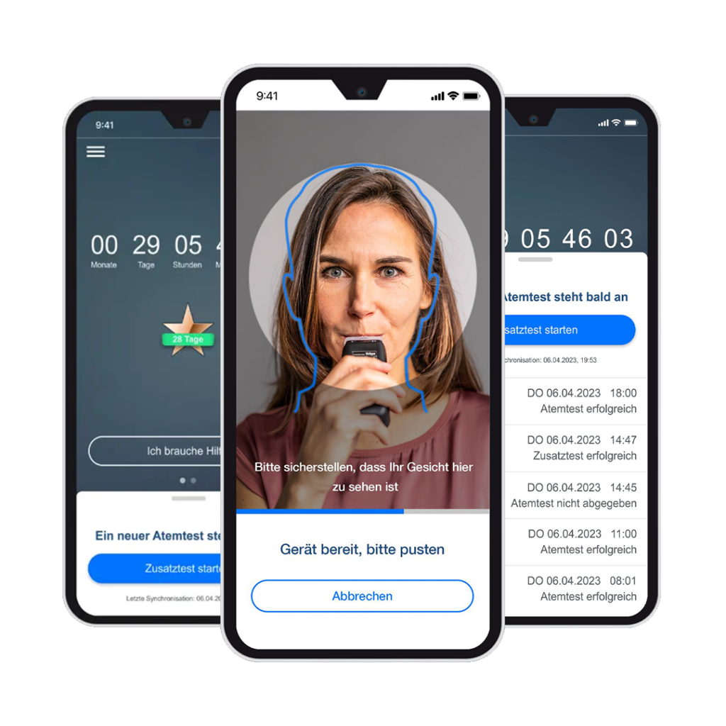 Die Anzahl der täglichen Tests kann variabel in Abstimmung mit Therapeut:innen oder Ärzt:innen erfolgen. App und Alkoholtester bieten Therapeut:innen eine ständige Verbindung zu Ihren Patient:innen und ein diskretes Monitoring.